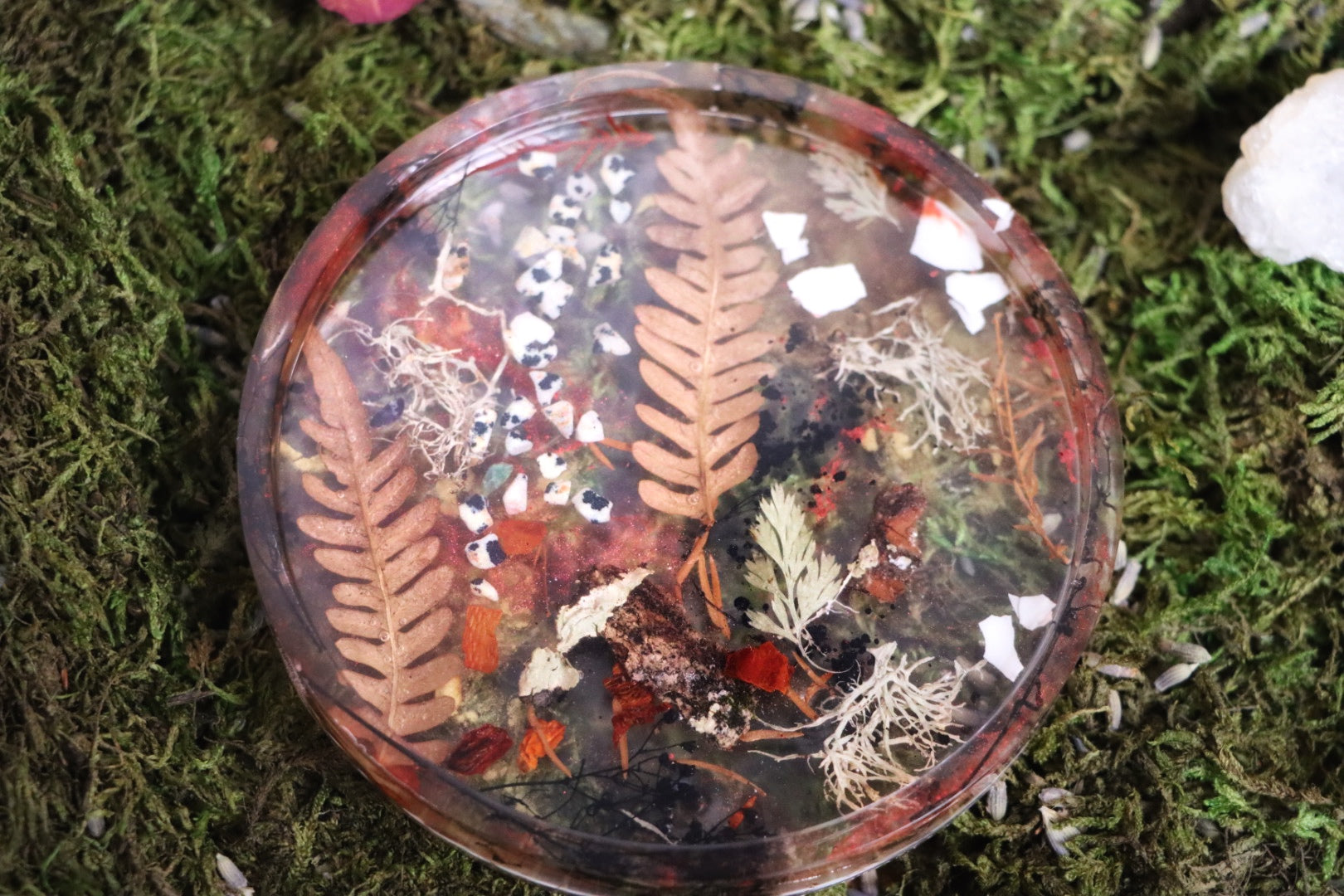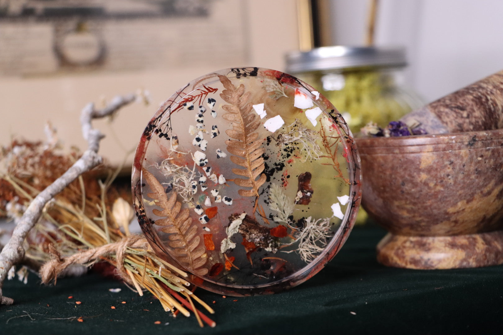 - Finally, the fern leaves, red cypress branches and black baby breath flowers create a spell of “Calling my power back to me”, in which you connect to the energy of your family tree, ancestors that came before you. This powerful source recharges you and gives you strength and resolve to move through karmic and generational trauma, becoming the healer of the whole ancestry.