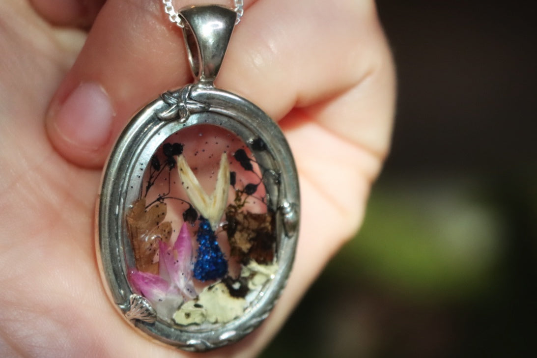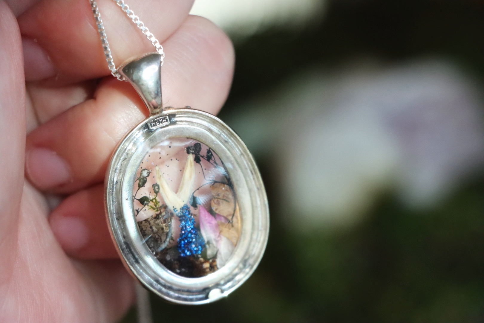 This is one of a kind Heirloom that will belong exclusively to you and your family (those you consider your family). The frame is made by hand of a silversmith, from high quality 925 sterling silver. Comes with a 18’ sterling silver chain from the same artisan.